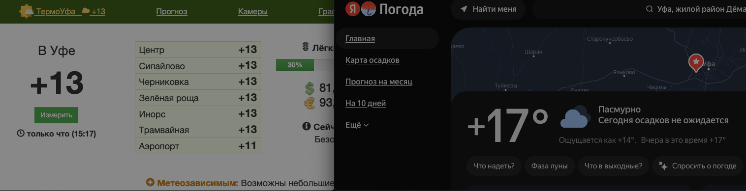 #3877 +1 1 дн Какой день подряд ваша температура ниже на 5-8 градусов реальнойСпасибо за сигнал! Проверим датчики. Уже откорректировали первую неточность |